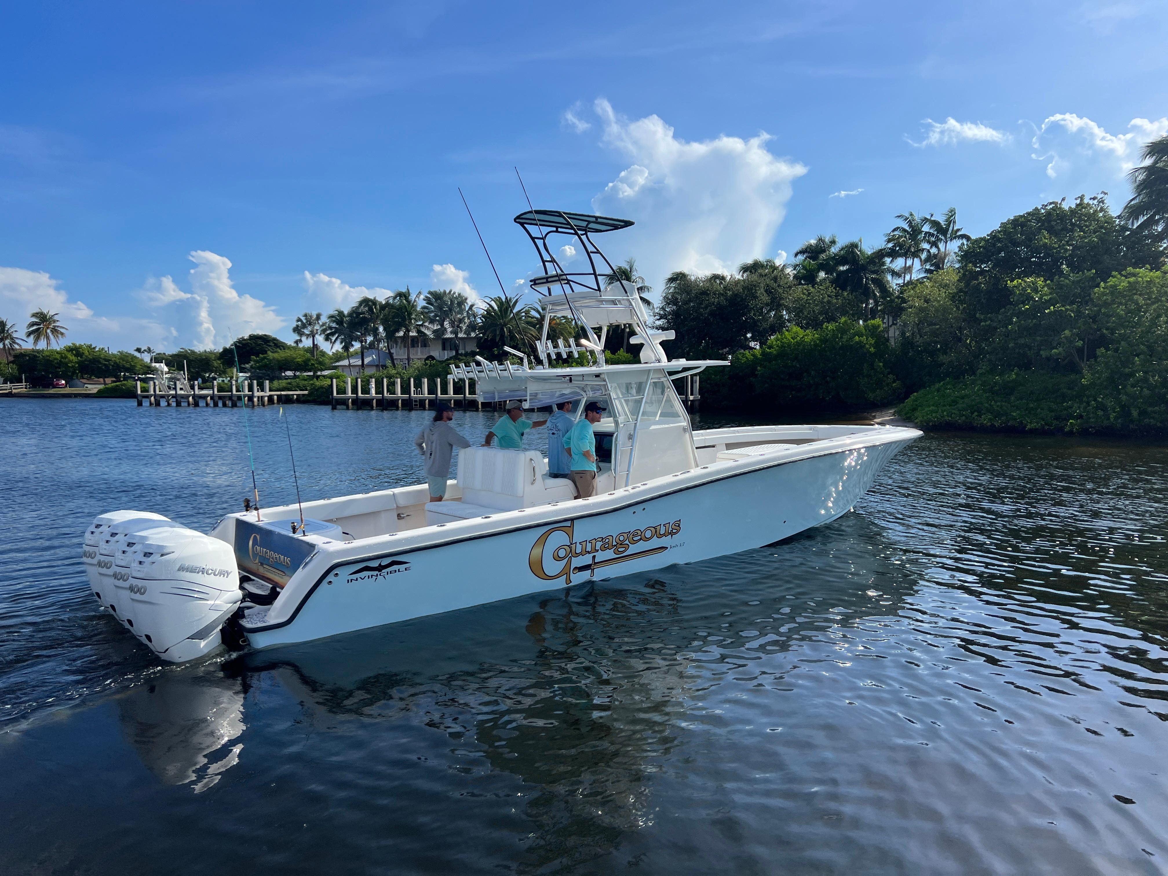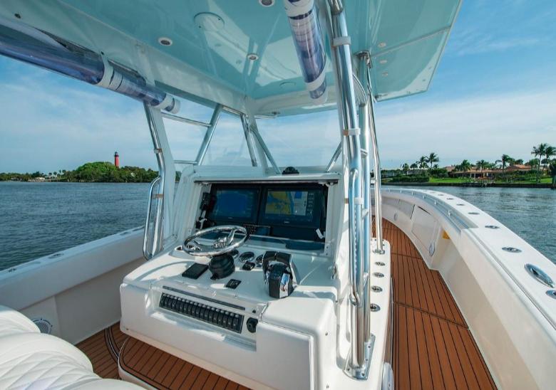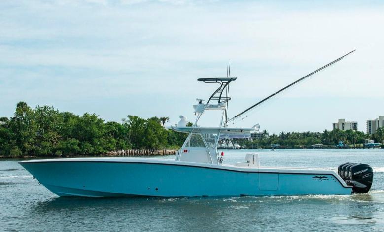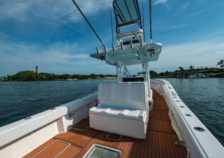 This 42 is in great condition: Gets detailed every other week & is Lift Kept / Covered. Powered by Upgraded: Quad 2024 Mercury 400s with only 390hrs- with full Gold Merc Warranties.